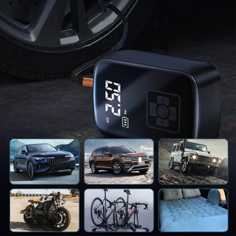 هذا الضاغط الهوائي المحمول يوفر نفخًا سريعًا ودقيقًا بفضل شاشته الرقمية المدمجة. تصميمه اللاسلكي يجعله مثاليًا للاستخدام أثناء التنقل، مما يضمن بقاء إطاراتك دائمًا عند الضغط الصحيح.